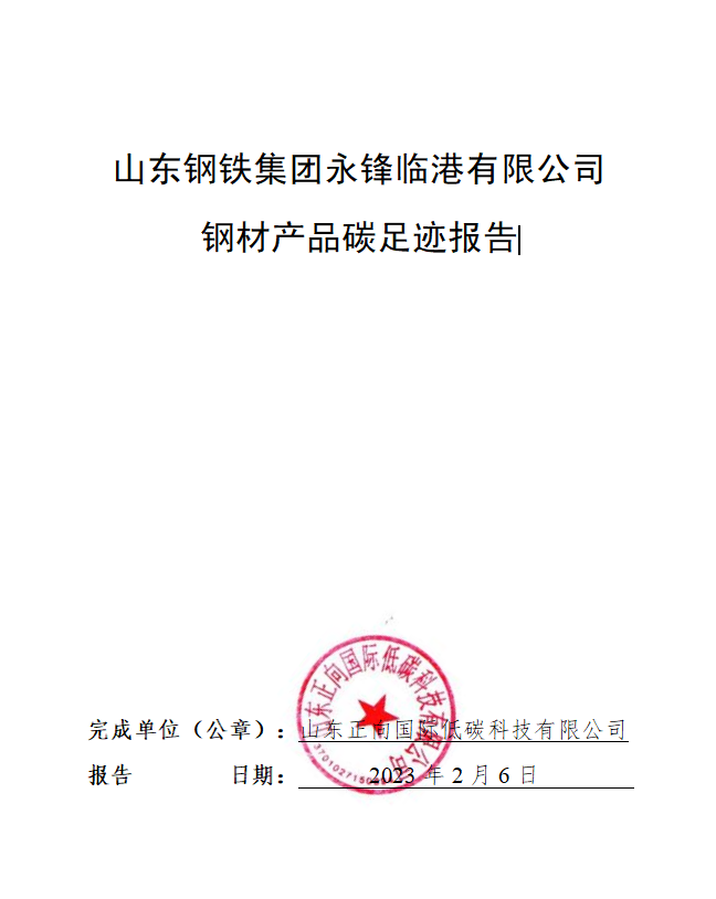 山东钢铁集团永锋临港有限公司钢材产品碳足迹报告